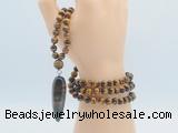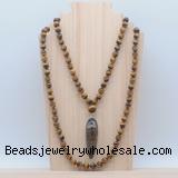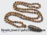 Details: Hand-knotted tiger eye mala necklaces: 108 8mm/10mm round grade AA yellow tiger eye beads with iron tiger pendant/12mm guru bead and iron tiger pendant (you can choose different pendants, but there will be tiny different in shape & color, we will make the jewelry randomly according to our stock) Item: GMN4040 Material: No.1: 8mm: 108 8mm yellow tiger eye beads & iron tiger pendant 10mm: 108 10mm yellow tiger eye beads & iron tiger pendant No.2: 8mm: 108 8mm yellow tiger eye beads, 12mm guru bead & iron tiger pendant 10mm: 108 10mm yellow tiger eye beads, 12mm guru bead & iron tiger pendant Color: See image Length (inch): Necklace length: 8mm: approx 37 - 40 inches (Not including guru bead & pendant) 10mm: approx 46 - 50 inches (Not including guru bead & pendant) Pendants: approx 18*50mm – 25*60mm Quantity Discount Pricing: 1 – 4: None 5 – 49: 95% 50 – 99: 90% 100+: 85% This mala is available in both 8mm and 10mm beads, The listed price is for 1 piece 8mm mala necklace