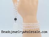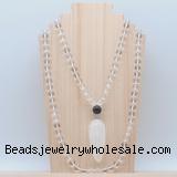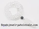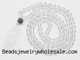 Details: Hand-knotted quartz mala necklaces: 108 8mm/10mm round white crystal beads with white crystal pendant/12mm black agate guru bead and white crystal pendant (you can choose different pendants, but there will be tiny different in shape & color, we will make the jewelry randomly according to our stock) Item: GMN4048 Material: No.1: 8mm: 108 8mm white crystal beads & white crystal pendant 10mm: 108 10mm white crystal beads & white crystal pendant No.2: 8mm: 108 8mm white crystal beads, 12mm black agate guru bead & white crystal pendant 10mm: 108 10mm white crystal beads, 12mm black agate guru bead & white crystal pendant Color: See image Length (inch): Necklace length: 8mm: approx 37 - 40 inches (Not including pendant) 10mm: approx 46 - 50 inches (Not including pendant) Pendants: approx 18*50mm - 25*60mm Quantity Discount Pricing: 1 – 4: None 5 – 49: 95% 50 – 99: 90% 100+: 85% This mala is available in both 8mm and 10mm beads, The listed price is for 1 piece 8mm mala necklace