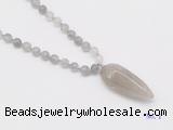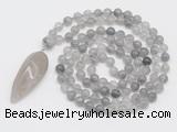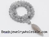 Details: Hand-knotted quartz mala necklaces: 108 8mm/10mm round cloudy quartz beads with smoky quartz pendant/12mm black agate guru bead and smoky quartz pendant (you can choose different pendants, but there will be tiny different in shape & color, we will make the jewelry randomly according to our stock) Item: GMN4049 Material: No.1: 8mm: 108 8mm cloudy quartz beads & smoky quartz pendant 10mm: 108 10mm cloudy quartz beads & smoky quartz pendant No.2: 8mm: 108 8mm cloudy quartz beads, 12mm black rutilated quartz guru bead & smoky quartz pendant 10mm: 108 10mm cloudy quartz beads, 12mm black rutilated quartz guru bead & smoky quartz pendant Color: See image Length (inch): Necklace length: 8mm: approx 37 - 40 inches (Not including pendant) 10mm: approx 46 - 50 inches (Not including pendant) Pendants: approx 18*50mm - 25*60mm Quantity Discount Pricing: 1 – 4: None 5 – 49: 95% 50 – 99: 90% 100+: 85% This mala is available in both 8mm and 10mm beads, The listed price is for 1 piece 8mm mala necklace