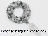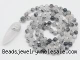 Details: Hand-knotted quartz mala necklaces: 108 8mm/10mm round black rutilated quartz beads with black rutilated quartz pendant/12mm guru bead and black rutilated quartz pendant (you can choose different pendants, but there will be tiny different in shape & color, we will make the jewelry randomly according to our stock) Item: GMN4051 Material: No.1: 8mm: 108 8mm black rutilated quartz beads & black rutilated quartz pendant 10mm: 108 10mm black rutilated quartz beads & black rutilated quartz pendant No.2: 8mm: 108 8mm black rutilated quartz beads, 12mm guru bead & black rutilated quartz pendant 10mm: 108 10mm black rutilated quartz beads, 12mm guru bead & black rutilated quartz pendant Color: See image Length (inch): Necklace length: 8mm: approx 37 - 40 inches (Not including guru bead & pendant) 10mm: approx 46 - 50 inches (Not including guru bead & pendant) Pendants: approx 18*50mm - 25*60mm Quantity Discount Pricing: 1 – 4: None 5 – 49: 95% 50 – 99: 90% 100+: 85% This mala is available in both 8mm and 10mm beads, The listed price is for 1 piece 8mm mala necklace