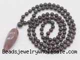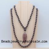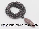 Details: Hand-knotted quartz mala necklaces: 108 8mm/10mm round garnet beads with strawberry quartz pendant/12mm guru bead and strawberry quartz pendant (you can choose different pendants, but there will be tiny different in shape & color, we will make the jewelry randomly according to our stock) Item: GMN4055 Material: No.1: 8mm: 108 8mm garnet beads & strawberry quartz pendant 10mm: 108 10mm garnet beads & strawberry quartz pendant No.2: 8mm: 108 8mm garnet beads, 12mm guru bead & strawberry quartz pendant 10mm: 108 10mm garnet beads, 12mm guru bead & strawberry quartz pendant Color: See image Length (inch): Necklace length: 8mm: approx 37 - 40 inches (Not including guru bead & pendant) 10mm: approx 46 - 50 inches (Not including guru bead & pendant) Pendants: approx 18*50mm - 25*60mm Quantity Discount Pricing: 1 – 4: None 5 – 49: 95% 50 – 99: 90% 100+: 85% This mala is available in both 8mm and 10mm beads, The listed price is for 1 piece 8mm mala necklace