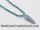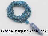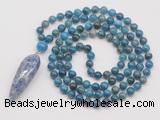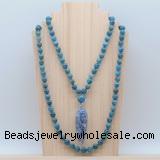 Details: Hand-knotted apatite mala necklaces: 108 8mm/10mm round apatite beads with blue spot stone pendant/12mm guru bead and blue spot stone pendant (you can choose different pendants, but there will be tiny different in shape & color, we will make the jewelry randomly according to our stock) Item: GMN4086 Material: No.1: 8mm: 108 8mm apatite beads & blue spot stone pendant 10mm: 108 10mm apatite beads & blue spot stone pendant No.2: 8mm: 108 8mm apatite beads, 12mm guru bead & blue spot stone pendant 10mm: 108 10mm apatite beads, 12mm guru bead & blue spot stone pendant Color: See image Length (inch): Necklace length: 8mm: approx 37 - 40 inches (Not including guru bead & pendant) 10mm: approx 46 - 50 inches (Not including guru bead & pendant) Pendants: approx 18*50mm - 25*60mm Quantity Discount Pricing: 1 – 4: None 5 – 49: 95% 50 – 99: 90% 100+: 85% This mala is available in both 8mm and 10mm beads, The listed price is for 1 piece 8mm mala necklace