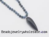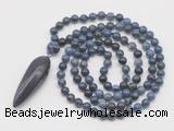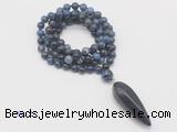 Details: Hand-knotted dumortierite mala necklaces: 108 8mm/10mm round dumortierite beads with blue goldstone pendant/12mm guru bead and blue goldstone pendant (you can choose different pendants, but there will be tiny different in shape & color, we will make the jewelry randomly according to our stock) Item: GMN4089 Material: No.1: 8mm: 108 8mm dumortierite beads & blue goldstone pendant 10mm: 108 10mm dumortierite beads & blue goldstone pendant No.2: 8mm: 108 8mm dumortierite beads, 12mm guru bead & blue goldstone pendant 10mm: 108 10mm dumortierite beads, 12mm guru bead & blue goldstone pendant Color: See image Length (inch): Necklace length: 8mm: approx 37 - 40 inches (Not including guru bead & pendant) 10mm: approx 46 - 50 inches (Not including guru bead & pendant) Pendants: approx 18*50mm - 25*60mm Quantity Discount Pricing: 1 – 4: None 5 – 49: 95% 50 – 99: 90% 100+: 85% This mala is available in both 8mm and 10mm beads, The listed price is for 1 piece 8mm mala necklace