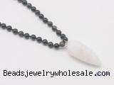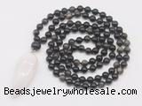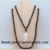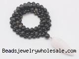 Details: Hand-knotted obsidia mala necklaces: 108 8mm/10mm round golden obsidian beads with white crystal pendant/12mm guru bead and white crystal pendant (you can choose different pendants, but there will be tiny different in shape & color, we will make the jewelry randomly according to our stock) Item: GMN4091 Material: No.1: 8mm: 108 8mm golden obsidian beads & white crystal pendant 10mm: 108 10mm golden obsidian beads & white crystal pendant No.2: 8mm: 108 8mm golden obsidian beads, 12mm guru bead & white crystal pendant 10mm: 108 10mm golden obsidian beads, 12mm guru bead & white crystal pendant Color: See image Length (inch): Necklace length: 8mm: approx 37 - 40 inches (Not including guru bead & pendant) 10mm: approx 46 - 50 inches (Not including guru bead & pendant) Pendants: approx 18*50mm - 25*60mm Quantity Discount Pricing: 1 – 4: None 5 – 49: 95% 50 – 99: 90% 100+: 85% This mala is available in both 8mm and 10mm beads, The listed price is for 1 piece 8mm mala necklace