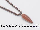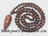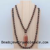Details: Hand-knotted obsidia mala necklaces: 108 8mm/10mm round mahogany obsidian beads with goldstone pendant/12mm guru bead and goldstone pendant (you can choose different pendants, but there will be tiny different in shape & color, we will make the jewelry randomly according to our stock) Item: GMN4092 Material: No.1: 8mm: 108 8mm mahogany obsidian beads & goldstone pendant 10mm: 108 10mm mahogany obsidian beads & goldstone pendant No.2: 8mm: 108 8mm mahogany obsidian beads, 12mm guru bead & goldstone pendant 10mm: 108 10mm mahogany obsidian beads, 12mm guru bead & goldstone pendant Color: See image Length (inch): Necklace length: 8mm: approx 37 - 40 inches (Not including guru bead & pendant) 10mm: approx 46 - 50 inches (Not including guru bead & pendant) Pendants: approx 18*50mm - 25*60mm Quantity Discount Pricing: 1 – 4: None 5 – 49: 95% 50 – 99: 90% 100+: 85% This mala is available in both 8mm and 10mm beads, The listed price is for 1 piece 8mm mala necklace