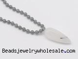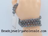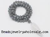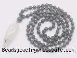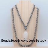Details: Hand-knotted labradorite mala necklaces: 108 8mm/10mm round grade A labradorite beads with black rutilated quartz pendant/12mm guru bead and black rutilated quartz pendant (you can choose different pendants, but there will be tiny different in shape & color, we will make the jewelry randomly according to our stock) Item: GMN4095 Material: No.1: 8mm: 108 8mm labradorite beads & black rutilated quartz pendant 10mm: 108 10mm labradorite beads & black rutilated quartz pendant No.2: 8mm: 108 8mm labradorite beads, 12mm guru bead & black rutilated quartz pendant 10mm: 108 10mm labradorite beads, 12mm guru bead & black rutilated quartz pendant Color: See image Length (inch): Necklace length: 8mm: approx 37 - 40 inches (Not including guru bead & pendant) 10mm: approx 46 - 50 inches (Not including guru bead & pendant) Pendants: approx 18*50mm - 25*60mm Quantity Discount Pricing: 1 – 4: None 5 – 49: 95% 50 – 99: 90% 100+: 85% This mala is available in both 8mm and 10mm beads, The listed price is for 1 piece 8mm mala necklace