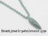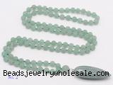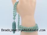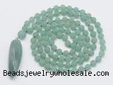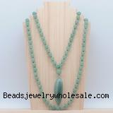 Details: Hand-knotted aventurine mala necklaces: 108 8mm/10mm round matte green aventurine beads with green aventurine pendant/12mm guru bead and green aventurine pendant (you can choose different pendants, but there will be tiny different in shape & color, we will make the jewelry randomly according to our stock) Item: GMN4206 Material: No.1: 8mm: 108 8mm matte green aventurine beads & green aventurine pendant 10mm: 108 10mm matte green aventurine beads & green aventurine pendant No.2: 8mm: 108 8mm matte green aventurine beads, 12mm guru bead & green aventurine pendant 10mm: 108 10mm matte green aventurine beads, 12mm guru bead & green aventurine pendant Color: See image Length (inch): Necklace length: 8mm: approx 37 - 40 inches (Not including guru bead & pendant) 10mm: approx 46 - 50 inches (Not including guru bead & pendant) Pendants: approx 18*50mm – 25*60mm Quantity Discount Pricing: 1 – 4: None 5 – 49: 95% 50 – 99: 90% 100+: 85% This mala is available in both 8mm and 10mm beads, The listed price is for 1 piece 8mm mala necklace
