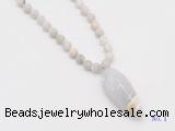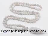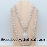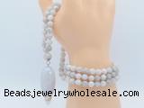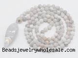 Details: Hand-knotted agate mala necklaces: 108 8mm/10mm round matte white crazy lace agate beads with agate pendant/12mm guru bead and agate pendant (you can choose different pendants, but there will be tiny different in shape & color, we will make the jewelry randomly according to our stock) Item: GMN4210 Material: No.1: 8mm: 108 8mm matte white crazy lace agate beads & agate pendant 10mm: 108 10mm matte white crazy lace agate beads & agate pendant No.2: 8mm: 108 8mm matte white crazy lace agate beads, 12mm guru bead & agate pendant 10mm: 108 10mm matte white crazy lace agate beads, 12mm guru bead & agate pendant Color: See image Length (inch): Necklace length: 8mm: approx 37 - 40 inches (Not including guru bead & pendant) 10mm: approx 46 - 50 inches (Not including guru bead & pendant) Pendants: approx 18*50mm – 25*60mm Quantity Discount Pricing: 1 – 4: None 5 – 49: 95% 50 – 99: 90% 100+: 85% This mala is available in both 8mm and 10mm beads, The listed price is for 1 piece 8mm mala necklace