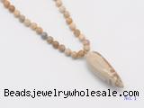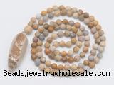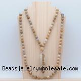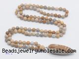 Details: Hand-knotted coral mala necklaces: 108 8mm/10mm round matte fossil coral beads with picture jasper pendant/12mm guru bead and picture jasper pendant (you can choose different pendants, but there will be tiny different in shape & color, we will make the jewelry randomly according to our stock) Item: GMN4212 Material: No.1: 8mm: 108 8mm matte fossil coral beads & picture jasper pendant 10mm: 108 10mm matte fossil coral beads & picture jasper pendant No.2: 8mm: 108 8mm matte fossil coral beads, 12mm guru bead & picture jasper pendant 10mm: 108 10mm matte fossil coral beads, 12mm guru bead & picture jasper pendant Color: See image Length (inch): Necklace length: 8mm: approx 37 - 40 inches (Not including guru bead & pendant) 10mm: approx 46 - 50 inches (Not including guru bead & pendant) Pendants: approx 18*50mm – 25*60mm Quantity Discount Pricing: 1 – 4: None 5 – 49: 95% 50 – 99: 90% 100+: 85% This mala is available in both 8mm and 10mm beads, The listed price is for 1 piece 8mm mala necklace