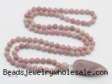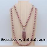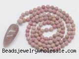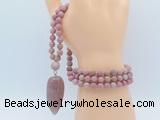 Details: Hand-knotted jasper mala necklaces: 108 8mm/10mm round matte pink wooden fossil jasper beads with strawberry quartz pendant/12mm guru bead and strawberry quartz pendant (you can choose different pendants, but there will be tiny different in shape & color, we will make the jewelry randomly according to our stock) Item: GMN4214 Material: No.1: 8mm: 108 8mm matte pink wooden fossil jasper beads & strawberry quartz pendant 10mm: 108 10mm matte pink wooden fossil jasper beads & strawberry quartz pendant No.2: 8mm: 108 8mm matte pink wooden fossil jasper beads, 12mm guru bead & strawberry quartz pendant 10mm: 108 10mm matte pink wooden fossil jasper beads, 12mm guru bead & strawberry quartz pendant Color: See image Length (inch): Necklace length: 8mm: approx 37 - 40 inches (Not including guru bead & pendant) 10mm: approx 46 - 50 inches (Not including guru bead & pendant) Pendants: approx 18*50mm – 25*60mm Quantity Discount Pricing: 1 – 4: None 5 – 49: 95% 50 – 99: 90% 100+: 85% This mala is available in both 8mm and 10mm beads, The listed price is for 1 piece 8mm mala necklace