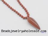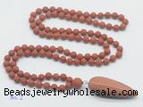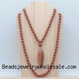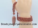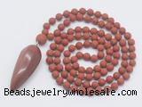 Details: Hand-knotted jasper mala necklaces: 108 8mm/10mm round matte red jasper beads with goldstone pendant/12mm guru bead and goldstone pendant (you can choose different pendants, but there will be tiny different in shape & color, we will make the jewelry randomly according to our stock) Item: GMN4215 Material: No.1: 8mm: 108 8mm matte red jasper beads & goldstone pendant 10mm: 108 10mm matte red jasper beads & goldstone pendant No.2: 8mm: 108 8mm matte red jasper beads, 12mm guru bead & goldstone pendant 10mm: 108 10mm matte red jasper beads, 12mm guru bead & goldstone pendant Color: See image Length (inch): Necklace length: 8mm: approx 37 - 40 inches (Not including guru bead & pendant) 10mm: approx 46 - 50 inches (Not including guru bead & pendant) Pendants: approx 18*50mm – 25*60mm Quantity Discount Pricing: 1 – 4: None 5 – 49: 95% 50 – 99: 90% 100+: 85% This mala is available in both 8mm and 10mm beads, The listed price is for 1 piece 8mm mala necklace