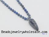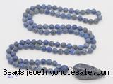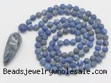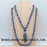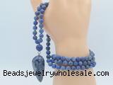 Details: Hand-knotted lapis lazuli mala necklaces: 108 8mm/10mm round matte lapis lazuli beads with sodalite pendant/12mm guru bead and sodalite pendant (you can choose different pendants, but there will be tiny different in shape & color, we will make the jewelry randomly according to our stock) Item: GMN4227 Material: No.1: 8mm: 108 8mm matte lapis lazuli beads & sodalite pendant 10mm: 108 10mm matte lapis lazuli beads & sodalite pendant No.2: 8mm: 108 8mm matte lapis lazuli beads, 12mm guru bead & sodalite pendant 10mm: 108 10mm matte lapis lazuli beads, 12mm guru bead & sodalite pendant Color: See image Length (inch): Necklace length: 8mm: approx 37 - 40 inches (Not including guru bead & pendant) 10mm: approx 46 - 50 inches (Not including guru bead & pendant) Pendants: approx 18*50mm – 25*60mm Quantity Discount Pricing: 1 – 4: None 5 – 49: 95% 50 – 99: 90% 100+: 85% This mala is available in both 8mm and 10mm beads, The listed price is for 1 piece 8mm mala necklace