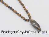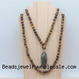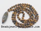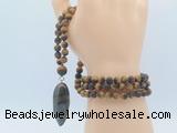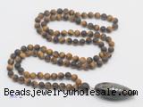 Details: Hand-knotted tiger eye mala necklaces: 108 8mm/10mm round matte yellow tiger eye beads with iron tiger pendant/12mm guru bead and iron tiger pendant (you can choose different pendants, but there will be tiny different in shape & color, we will make the jewelry randomly according to our stock) Item: GMN4229 Material: No.1: 8mm: 108 8mm matte yellow tiger eye beads & iron tiger pendant 10mm: 108 10mm matte yellow tiger eye beads & iron tiger pendant No.2: 8mm: 108 8mm matte yellow tiger eye beads, 12mm guru bead & iron tiger pendant 10mm: 108 10mm matte yellow tiger eye beads, 12mm guru bead & iron tiger pendant Color: See image Length (inch): Necklace length: 8mm: approx 37 - 40 inches (Not including guru bead & pendant) 10mm: approx 46 - 50 inches (Not including guru bead & pendant) Pendants: approx 18*50mm – 25*60mm Quantity Discount Pricing: 1 – 4: None 5 – 49: 95% 50 – 99: 90% 100+: 85% This mala is available in both 8mm and 10mm beads, The listed price is for 1 piece 8mm mala necklace