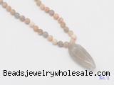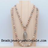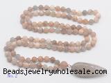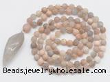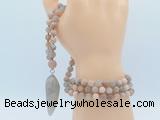 Details: Hand-knotted sunstone mala necklaces: 108 8mm/10mm round matte sunstone beads with smoky quartz pendant/12mm guru bead and smoky quartz pendant (you can choose different pendants, but there will be tiny different in shape & color, we will make the jewelry randomly according to our stock) Item: GMN4230 Material: No.1: 8mm: 108 8mm matte sunstone beads & smoky quartz pendant 10mm: 108 10mm matte sunstone beads & smoky quartz pendant No.2: 8mm: 108 8mm matte sunstone beads, 12mm guru bead & smoky quartz pendant 10mm: 108 10mm matte sunstone beads, 12mm guru bead & smoky quartz pendant Color: See image Length (inch): Necklace length: 8mm: approx 37 - 40 inches (Not including guru bead & pendant) 10mm: approx 46 - 50 inches (Not including guru bead & pendant) Pendants: approx 18*50mm – 25*60mm Quantity Discount Pricing: 1 – 4: None 5 – 49: 95% 50 – 99: 90% 100+: 85% This mala is available in both 8mm and 10mm beads, The listed price is for 1 piece 8mm mala necklace