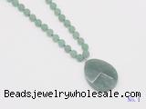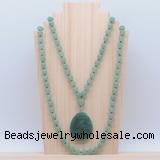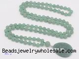 Details: Hand-knotted aventurine mala necklaces: 108 8mm/10mm round matte green aventurine beads with green aventurine pendant/12mm guru bead and green aventurine pendant (you can choose different pendants, but there will be tiny different in shape & color, we will make the jewelry randomly according to our stock) Item: GMN4406 Material: No.1: 8mm: 108 8mm matte green aventurine beads & green aventurine pendant 10mm: 108 10mm matte green aventurine beads & green aventurine pendant No.2: 8mm: 108 8mm matte green aventurine beads, 12mm guru bead & green aventurine pendant 10mm: 108 10mm matte green aventurine beads, 12mm guru bead & green aventurine pendant Color: See image Length (inch): Necklace length: 8mm: approx 37 - 40 inches (Not including guru bead & pendant) 10mm: approx 46 - 50 inches (Not including guru bead & pendant) Pendants: approx 18*50mm – 25*60mm Quantity Discount Pricing: 1 – 4: None 5 – 49: 95% 50 – 99: 90% 100+: 85% This mala is available in both 8mm and 10mm beads, The listed price is for 1 piece 8mm mala necklace