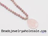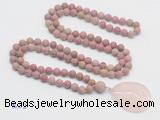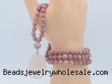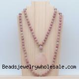Details: Hand-knotted jasper mala necklaces: 108 8mm/10mm round matte pink wooden fossil jasper beads with rose quartz pendant/12mm guru bead and rose quartz pendant (you can choose different pendants, but there will be tiny different in shape & color, we will make the jewelry randomly according to our stock) Item: GMN4414 Material: No.1: 8mm: 108 8mm matte pink wooden fossil jasper beads & rose quartz pendant 10mm: 108 10mm matte pink wooden fossil jasper beads & rose quartz pendant No.2: 8mm: 108 8mm matte pink wooden fossil jasper beads, 12mm guru bead & rose quartz pendant 10mm: 108 10mm matte pink wooden fossil jasper beads, 12mm guru bead & rose quartz pendant Color: See image Length (inch): Necklace length: 8mm: approx 37 - 40 inches (Not including guru bead & pendant) 10mm: approx 46 - 50 inches (Not including guru bead & pendant) Pendants: approx 18*50mm – 25*60mm Quantity Discount Pricing: 1 – 4: None 5 – 49: 95% 50 – 99: 90% 100+: 85% This mala is available in both 8mm and 10mm beads, The listed price is for 1 piece 8mm mala necklace
