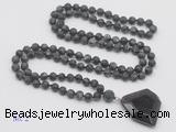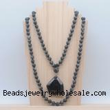 Details: Hand-knotted labradorite mala necklaces: 108 8mm/10mm round matte black labradorite beads with smoky quartz pendant/12mm guru bead and smoky quartz pendant (you can choose different pendants, but there will be tiny different in shape & color, we will make the jewelry randomly according to our stock) Item: GMN4422 Material: No.1: 8mm: 108 8mm matte black labradorite beads & smoky quartz pendant 10mm: 108 10mm matte black labradorite beads & smoky quartz pendant No.2: 8mm: 108 8mm matte black labradorite beads, 12mm guru bead & smoky quartz pendant 10mm: 108 10mm matte black labradorite beads, 12mm guru bead & smoky quartz pendant Color: See image Length (inch): Necklace length: 8mm: approx 37 - 40 inches (Not including guru bead & pendant) 10mm: approx 46 - 50 inches (Not including guru bead & pendant) Pendants: approx 18*50mm – 25*60mm Quantity Discount Pricing: 1 – 4: None 5 – 49: 95% 50 – 99: 90% 100+: 85% This mala is available in both 8mm and 10mm beads, The listed price is for 1 piece 8mm mala necklace