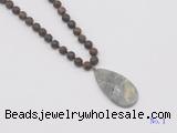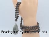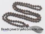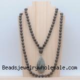 Details: Hand-knotted bronzite mala necklaces: 108 8mm/10mm round matte bronzite beads with labradorite pendant/12mm guru bead and labradorite pendant (you can choose different pendants, but there will be tiny different in shape & color, we will make the jewelry randomly according to our stock) Item: GMN4423 Material: No.1: 8mm: 108 8mm matte bronzite beads & labradorite pendant 10mm: 108 10mm matte bronzite beads & labradorite pendant No.2: 8mm: 108 8mm matte bronzite beads, 12mm guru bead & labradorite pendant 10mm: 108 10mm matte bronzite beads, 12mm guru bead & labradorite pendant Color: See image Length (inch): Necklace length: 8mm: approx 37 - 40 inches (Not including guru bead & pendant) 10mm: approx 46 - 50 inches (Not including guru bead & pendant) Pendants: approx 18*50mm – 25*60mm Quantity Discount Pricing: 1 – 4: None 5 – 49: 95% 50 – 99: 90% 100+: 85% This mala is available in both 8mm and 10mm beads, The listed price is for 1 piece 8mm mala necklace