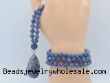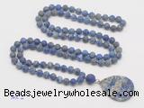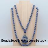 Details: Hand-knotted lapis lazuli mala necklaces: 108 8mm/10mm round matte lapis lazuli beads with sodalite pendant/12mm guru bead and sodalite pendant (you can choose different pendants, but there will be tiny different in shape & color, we will make the jewelry randomly according to our stock) Item: GMN4427 Material: No.1: 8mm: 108 8mm matte lapis lazuli beads & sodalite pendant 10mm: 108 10mm matte lapis lazuli beads & sodalite pendant No.2: 8mm: 108 8mm matte lapis lazuli beads, 12mm guru bead & sodalite pendant 10mm: 108 10mm matte lapis lazuli beads, 12mm guru bead & sodalite pendant Color: See image Length (inch): Necklace length: 8mm: approx 37 - 40 inches (Not including guru bead & pendant) 10mm: approx 46 - 50 inches (Not including guru bead & pendant) Pendants: approx 18*50mm – 25*60mm Quantity Discount Pricing: 1 – 4: None 5 – 49: 95% 50 – 99: 90% 100+: 85% This mala is available in both 8mm and 10mm beads, The listed price is for 1 piece 8mm mala necklace