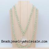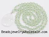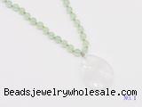 Details: Hand-knotted prehnite mala necklaces: 108 8mm/10mm round grade AA prehnite beads with white crystal pendant/12mm guru bead and white crystal pendant (you can choose different pendants, but there will be tiny different in shape & color, we will make the jewelry randomly according to our stock) Item: GMN4601 Material: No.1: 8mm: 108 8mm prehnite beads & white crystal pendant 10mm: 108 10mm prehnite beads & white crystal pendant No.2: 8mm: 108 8mm prehnite beads, 12mm guru bead & white crystal pendant 10mm: 108 10mm prehnite beads, 12mm guru bead & white crystal pendant Color: See image Length (inch): Necklace length: 8mm: approx 37 - 40 inches (Not including guru bead & pendant) 10mm: approx 46 - 50 inches (Not including guru bead & pendant) Pendants: approx 18*50mm – 25*60mm Quantity Discount Pricing: 1 – 4: None 5 – 49: 95% 50 – 99: 90% 100+: 85% This mala is available in both 8mm and 10mm beads, The listed price is for 1 piece 8mm mala necklace