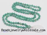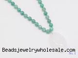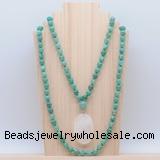 Details: Hand-knotted agate mala necklaces: 108 8mm/10mm round peafowl agate beads with white crystal pendant/12mm guru bead and white crystal pendant (you can choose different pendants, but there will be tiny different in shape & color, we will make the jewelry randomly according to our stock) Item: GMN4612 Material: No.1: 8mm: 108 8mm peafowl agate beads & white crystal pendant 10mm: 108 10mm peafowl agate beads & white crystal pendant No.2: 8mm: 108 8mm peafowl agate beads, 12mm guru bead & white crystal pendant 10mm: 108 10mm peafowl agate beads, 12mm guru bead & white crystal pendant Color: See image Length (inch): Necklace length: 8mm: approx 37 - 40 inches (Not including guru bead & pendant) 10mm: approx 46 - 50 inches (Not including guru bead & pendant) Pendants: approx 18*50mm – 25*60mm Quantity Discount Pricing: 1 – 4: None 5 – 49: 95% 50 – 99: 90% 100+: 85% This mala is available in both 8mm and 10mm beads, The listed price is for 1 piece 8mm mala necklace