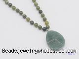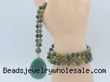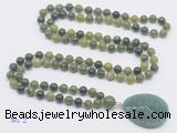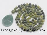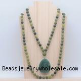 Details: Hand-knotted jade mala necklaces: 108 8mm/10mm round Canadian jade beads with green aventurine pendant/12mm guru bead and green aventurine pendant (you can choose different pendants, but there will be tiny different in shape & color, we will make the jewelry randomly according to our stock) Item: GMN4618 Material: No.1: 8mm: 108 8mm Canadian jade beads & green aventurine pendant 10mm: 108 10mm Canadian jade beads & green aventurine pendant No.2: 8mm: 108 8mm Canadian jade beads, 12mm guru bead & green aventurine pendant 10mm: 108 10mm Canadian jade beads, 12mm guru bead & green aventurine pendant Color: See image Length (inch): Necklace length: 8mm: approx 37 - 40 inches (Not including guru bead & pendant) 10mm: approx 46 - 50 inches (Not including guru bead & pendant) Pendants: approx 18*50mm – 25*60mm Quantity Discount Pricing: 1 – 4: None 5 – 49: 95% 50 – 99: 90% 100+: 85% This mala is available in both 8mm and 10mm beads, The listed price is for 1 piece 8mm mala necklace