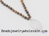 Hand-knotted tiger eye mala necklaces: 108 8mm/10mm round yellow tiger eye beads with white crystal pendant/12mm guru bead and white crystal pendant (you can choose different pendants, but there will be tiny different in shape & color, we will make the jewelry randomly according to our stock)