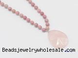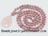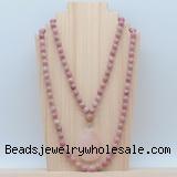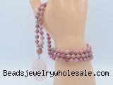 Details: Hand-knotted jasper mala necklaces: 108 8mm/10mm round pink wooden fossil jasper beads with rose quartz pendant/12mm guru bead and rose quartz pendant (you can choose different pendants, but there will be tiny different in shape & color, we will make the jewelry randomly according to our stock) Item: GMN4672 Material: No.1: 8mm: 108 8mm pink wooden fossil jasper beads & rose quartz pendant 10mm: 108 10mm pink wooden fossil jasper beads & rose quartz pendant No.2: 8mm: 108 8mm pink wooden fossil jasper beads, 12mm guru bead & rose quartz pendant 10mm: 108 10mm pink wooden fossil jasper beads, 12mm guru bead & rose quartz pendant Color: See image Length (inch): Necklace length: 8mm: approx 37 - 40 inches (Not including guru bead & pendant) 10mm: approx 46 - 50 inches (Not including guru bead & pendant) Quantity Discount Pricing: 1 – 4: None 5 – 49: 95% 50 – 99: 90% 100+: 85% This mala is available in both 8mm and 10mm beads, The listed price is for 1 piece 8mm mala necklace