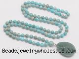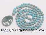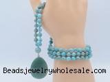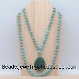 Details: Hand-knotted jasper mala necklaces: 108 8mm/10mm round sea sediment jasper beads with green aventurine pendant/12mm guru bead and green aventurine jasper pendant (you can choose different pendants, but there will be tiny different in shape & color, we will make the jewelry randomly according to our stock) Item: GMN4682 Material: No.1: 8mm: 108 8mm sea sediment jasper beads & green aventurine pendant 10mm: 108 10mm sea sediment jasper beads & green aventurine pendant No.2: 8mm: 108 8mm sea sediment jasper beads, 12mm guru bead & green aventurine pendant 10mm: 108 10mm sea sediment jasper beads, 12mm guru bead & green aventurine pendant Color: See image Length (inch): Necklace length: 8mm: approx 37 - 40 inches (Not including guru bead & pendant) 10mm: approx 46 - 50 inches (Not including guru bead & pendant) Quantity Discount Pricing: 1 – 4: None 5 – 49: 95% 50 – 99: 90% 100+: 85% This mala is available in both 8mm and 10mm beads, The listed price is for 1 piece 8mm mala necklace