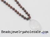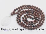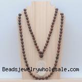 Details: Hand-knotted obsidia mala necklaces: 108 8mm/10mm round mahogany obsidian beads with white crystal pendant/12mm guru bead and white crystal pendant (you can choose different pendants, but there will be tiny different in shape & color, we will make the jewelry randomly according to our stock) Item: GMN4690 Material: No.1: 8mm: 108 8mm mahogany obsidian beads & white crystal pendant 10mm: 108 10mm mahogany obsidian beads & white crystal pendant No.2: 8mm: 108 8mm mahogany obsidian beads, 12mm guru bead & white crystal pendant 10mm: 108 10mm mahogany obsidian beads, 12mm guru bead & white crystal pendant Color: See image Length (inch): Necklace length: 8mm: approx 37 - 40 inches (Not including guru bead & pendant) 10mm: approx 46 - 50 inches (Not including guru bead & pendant) Quantity Discount Pricing: 1 – 4: None 5 – 49: 95% 50 – 99: 90% 100+: 85% This mala is available in both 8mm and 10mm beads, The listed price is for 1 piece 8mm mala necklace