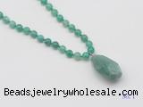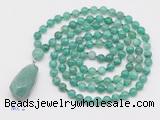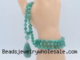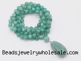 Details: Hand-knotted agate mala necklaces: 108 8mm/10mm round peafowl agate beads with green aventurine pendant/12mm guru bead and green aventurine pendant (you can choose different pendants, but there will be tiny different in shape & color, we will make the jewelry randomly according to our stock) Item: GMN4912 Material: No.1: 8mm: 108 8mm peafowl agate beads & green aventurine pendant 10mm: 108 10mm peafowl agate beads & green aventurine pendant No.2: 8mm: 108 8mm peafowl agate beads, 12mm guru bead & green aventurine pendant 10mm: 108 10mm peafowl agate beads, 12mm guru bead & green aventurine pendant Color: See image Length (inch): Necklace length: 8mm: approx 37 - 40 inches (Not including guru bead & pendant) 10mm: approx 46 - 50 inches (Not including guru bead & pendant) Pendants: approx 18*35mm - 28*40mm Quantity Discount Pricing: 1 - 4: None 5 - 49: 95% 50 - 99: 90% 100+: 85% This mala is available in both 8mm and 10mm beads, The listed price is for 1 piece 8mm mala necklace