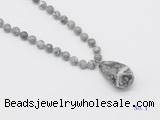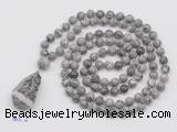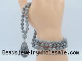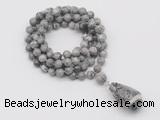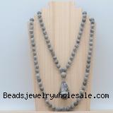 Details: Hand-knotted jasper mala necklaces: 108 8mm/10mm round grey picture jasper beads with fossil jasper pendant/12mm guru bead and fossil jasper pendant (you can choose different pendants, but there will be tiny different in shape & color, we will make the jewelry randomly according to our stock) Item: GMN4922 Material: No.1: 8mm: 108 8mm grey picture jasper beads & fossil jasper pendant 10mm: 108 10mm grey picture jasper beads & fossil jasper pendant No.2: 8mm: 108 8mm grey picture jasper beads, 12mm guru bead & fossil jasper pendant 10mm: 108 10mm grey picture jasper beads, 12mm guru bead & fossil jasper pendant Color: See image Length (inch): Necklace length: 8mm: approx 37 - 40 inches (Not including guru bead & pendant) 10mm: approx 46 - 50 inches (Not including guru bead & pendant) Pendants: approx 18*35mm - 28*40mm Quantity Discount Pricing: 1 - 4: None 5 - 49: 95% 50 - 99: 90% 100+: 85% This mala is available in both 8mm and 10mm beads, The listed price is for 1 piece 8mm mala necklace