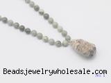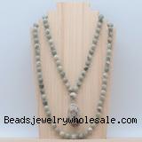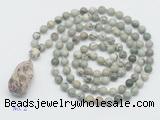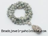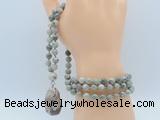 Details: Hand-knotted jasper mala necklaces: 108 8mm/10mm round artistic jasper beads with rainforest agate pendant/12mm guru bead and rainforest agate pendant (you can choose different pendants, but there will be tiny different in shape & color, we will make the jewelry randomly according to our stock) Item: GMN4923 Material: No.1: 8mm: 108 8mm artistic jasper beads & rainforest agate pendant 10mm: 108 10mm artistic jasper beads & rainforest agate pendant No.2: 8mm: 108 8mm artistic jasper beads, 12mm guru bead & rainforest agate pendant 10mm: 108 10mm artistic jasper beads, 12mm guru bead & rainforest agate pendant Color: See image Length (inch): Necklace length: 8mm: approx 37 - 40 inches (Not including guru bead & pendant) 10mm: approx 46 - 50 inches (Not including guru bead & pendant) Pendants: approx 18*35mm - 28*40mm Quantity Discount Pricing: 1 - 4: None 5 - 49: 95% 50 - 99: 90% 100+: 85% This mala is available in both 8mm and 10mm beads, The listed price is for 1 piece 8mm mala necklace