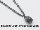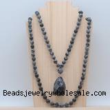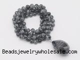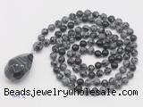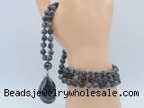 Details: Hand-knotted obsidian mala necklaces: 108 8mm/10mm round snowflake obsidian beads with agate pendant/12mm guru bead and agate pendant (you can choose different pendants, but there will be tiny different in shape & color, we will make the jewelry randomly according to our stock) Item: GMN4930 Material: No.1: 8mm: 108 8mm snowflake obsidian beads & agate pendant 10mm: 108 10mm snowflake obsidian beads & agate pendant No.2: 8mm: 108 8mm snowflake obsidian beads, 12mm guru bead & agate pendant 10mm: 108 10mm snowflake obsidian beads, 12mm guru bead & agate pendant Color: See image Length (inch): Necklace length: 8mm: approx 37 - 40 inches (Not including guru bead & pendant) 10mm: approx 46 - 50 inches (Not including guru bead & pendant) Pendants: approx 18*35mm - 28*40mm Quantity Discount Pricing: 1 - 4: None 5 - 49: 95% 50 - 99: 90% 100+: 85% This mala is available in both 8mm and 10mm beads, The listed price is for 1 piece 8mm mala necklace