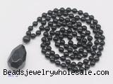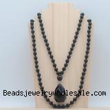 Details: Hand-knotted tourmaline mala necklaces: 108 8mm/10mm round black tourmaline beads with agate pendant/12mm guru bead and agate pendant (you can choose different pendants, but there will be tiny different in shape & color, we will make the jewelry randomly according to our stock) Item: GMN4932 Material: No.1: 8mm: 108 8mm black tourmaline beads & agate pendant 10mm: 108 10mm black tourmaline beads & agate pendant No.2: 8mm: 108 8mm black tourmaline beads, 12mm guru bead & agate pendant 10mm: 108 10mm black tourmaline beads, 12mm guru bead & agate pendant Color: See image Length (inch): Necklace length: 8mm: approx 37 - 40 inches (Not including guru bead & pendant) 10mm: approx 46 - 50 inches (Not including guru bead & pendant) Pendants: approx 18*35mm - 28*40mm Quantity Discount Pricing: 1 - 4: None 5 - 49: 95% 50 - 99: 90% 100+: 85% This mala is available in both 8mm and 10mm beads, The listed price is for 1 piece 8mm mala necklace