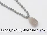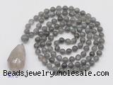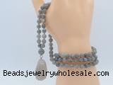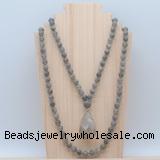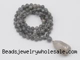 Details: Hand-knotted labradorite mala necklaces: 108 8mm/10mm round labradorite beads with smoky quartz pendant/12mm guru bead and smoky quartz pendant (you can choose different pendants, but there will be tiny different in shape & color, we will make the jewelry randomly according to our stock) Item: GMN4935 Material: No.1: 8mm: 108 8mm labradorite beads & smoky quartz pendant 10mm: 108 10mm labradorite beads & smoky quartz pendant No.2: 8mm: 108 8mm labradorite beads, 12mm guru bead & smoky quartz pendant 10mm: 108 10mm labradorite beads, 12mm guru bead & smoky quartz pendant Color: See image Length (inch): Necklace length: 8mm: approx 37 - 40 inches (Not including guru bead & pendant) 10mm: approx 46 - 50 inches (Not including guru bead & pendant) Pendants: approx 18*35mm - 28*40mm Quantity Discount Pricing: 1 - 4: None 5 - 49: 95% 50 - 99: 90% 100+: 85% This mala is available in both 8mm and 10mm beads, The listed price is for 1 piece 8mm mala necklace