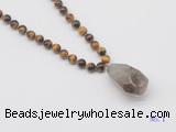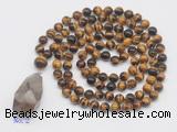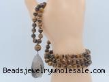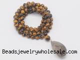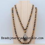 Details: Hand-knotted tiger eye mala necklaces: 108 8mm/10mm round yellow tiger eye beads with smoky quartz pendant/12mm guru bead and smoky quartz pendant (you can choose different pendants, but there will be tiny different in shape & color, we will make the jewelry randomly according to our stock) Item: GMN4939 Material: No.1: 8mm: 108 8mm yellow tiger eye beads & smoky quartz pendant 10mm: 108 10mm yellow tiger eye beads & smoky quartz pendant No.2: 8mm: 108 8mm yellow tiger eye beads, 12mm guru bead & smoky quartz pendant 10mm: 108 10mm yellow tiger eye beads, 12mm guru bead & smoky quartz pendant Color: See image Length (inch): Necklace length: 8mm: approx 37 - 40 inches (Not including guru bead & pendant) 10mm: approx 46 - 50 inches (Not including guru bead & pendant) Pendants: approx 18*35mm - 28*40mm Quantity Discount Pricing: 1 - 4: None 5 - 49: 95% 50 - 99: 90% 100+: 85% This mala is available in both 8mm and 10mm beads, The listed price is for 1 piece 8mm mala necklace