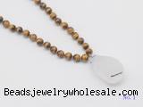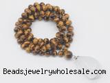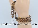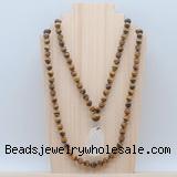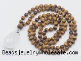 Details: Hand-knotted tiger eye mala necklaces: 108 8mm/10mm round grade AA yellow tiger eye beads with black rutilated quartz pendant/12mm guru bead and black rutilated quartz pendant (you can choose different pendants, but there will be tiny different in shape & color, we will make the jewelry randomly according to our stock) Item: GMN4940 Material: No.1: 8mm: 108 8mm yellow tiger eye beads & black rutilated quartz pendant 10mm: 108 10mm yellow tiger eye beads & black rutilated quartz pendant No.2: 8mm: 108 8mm yellow tiger eye beads, 12mm guru bead & black rutilated quartz pendant 10mm: 108 10mm yellow tiger eye beads, 12mm guru bead & black rutilated quartz pendant Color: See image Length (inch): Necklace length: 8mm: approx 37 - 40 inches (Not including guru bead & pendant) 10mm: approx 46 - 50 inches (Not including guru bead & pendant) Pendants: approx 18*35mm - 28*40mm Quantity Discount Pricing: 1 - 4: None 5 - 49: 95% 50 - 99: 90% 100+: 85% This mala is available in both 8mm and 10mm beads, The listed price is for 1 piece 8mm mala necklace