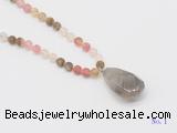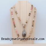 Each necklaces is handmade and hand-knotted with different gemstones. Please be aware that each necklace varies in stone pattern and color - Making it a truly one-of-a-kind, unique piece of jewelry.