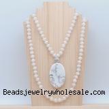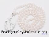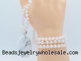 Details: Hand-knotted agate mala necklaces: 108 8mm/10mm round tibetan agate beads with white howlite pendant/12mm white crazy agate guru bead and white howlite pendant (you can choose different pendants, but there will be tiny different in shape & color, we will make the jewelry randomly according to our stock) Item: GMN5051 Material: No.1: 8mm: 108 8mm tibetan agate beads & white howlite pendant 10mm: 108 10mm tibetan agate beads & white howlite pendant No.2: 8mm: 108 8mm tibetan agate beads, 12mm white crazy agate guru bead & white howlite pendant 10mm: 108 10mm tibetan agate beads, 12mm white crazy agate guru bead & white howlite pendant Color: See image Length (inch): Necklace length: 8mm: approx 37 - 40 inches (Not including guru bead & pendant) 10mm: approx 46 - 50 inches (Not including guru bead & pendant) Quantity Discount Pricing: 1 - 4: None 5 - 49: 95% 50 - 99: 90% 100+: 85% This mala is available in both 8mm and 10mm beads, The listed price is for 1 piece 8mm mala necklace