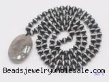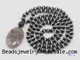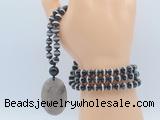 Details: Hand-knotted agate mala necklaces: 108 8mm/10mm round tibetan agate beads with smoky quartz pendant/12mm black agate guru bead and smoky quartz pendant (you can choose different pendants, but there will be tiny different in shape & color, we will make the jewelry randomly according to our stock) Item: GMN5052 Material: No.1: 8mm: 108 8mm tibetan agate beads & smoky quartz pendant 10mm: 108 10mm tibetan agate beads & smoky quartz pendant No.2: 8mm: 108 8mm tibetan agate beads, 12mm black agate guru bead & smoky quartz pendant 10mm: 108 10mm tibetan agate beads, 12mm black agate guru bead & smoky quartz pendant Color: See image Length (inch): Necklace length: 8mm: approx 37 - 40 inches (Not including guru bead & pendant) 10mm: approx 46 - 50 inches (Not including guru bead & pendant) Quantity Discount Pricing: 1 - 4: None 5 - 49: 95% 50 - 99: 90% 100+: 85% This mala is available in both 8mm and 10mm beads, The listed price is for 1 piece 8mm mala necklace