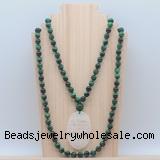 Mala necklace is worn on the neck or wrist while not in use. It may also serve as a nice accessory in everyday life or on some special occasions. Whether as a calming meditation guide or a beautiful, this necklace will be a great addition to your spiritual practice.