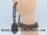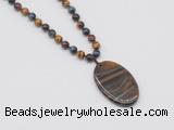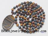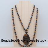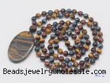 Details: Hand-knotted tiger eye mala necklaces: 108 8mm/10mm round grade AA mixed tiger eye beads with iron tiger pendant/12mm guru bead and iron tiger pendant (you can choose different pendants, but there will be tiny different in shape & color, we will make the jewelry randomly according to our stock) Item: GMN5071 Material: No.1: 8mm: 108 8mm mixed tiger eye beads & iron tiger pendant 10mm: 108 10mm mixed tiger eye beads & iron tiger pendant No.2: 8mm: 108 8mm mixed tiger eye beads, 12mm guru bead & iron tiger pendant 10mm: 108 10mm mixed tiger eye beads, 12mm guru bead & iron tiger pendant Color: See image Length (inch): Necklace length: 8mm: approx 37 - 40 inches (Not including guru bead & pendant) 10mm: approx 46 - 50 inches (Not including guru bead & pendant) Quantity Discount Pricing: 1 - 4: None 5 - 49: 95% 50 - 99: 90% 100+: 85% This mala is available in both 8mm and 10mm beads, The listed price is for 1 piece 8mm mala necklace