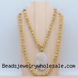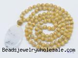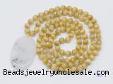 Details: Hand-knotted tiger eye mala necklaces: 108 8mm/10mm round grade AA golden tiger eye beads with black rutilated quartz pendant/12mm guru bead and black rutilated quartz pendant (you can choose different pendants, but there will be tiny different in shape & color, we will make the jewelry randomly according to our stock) Item: GMN5074 Material: No.1: 8mm: 108 8mm golden tiger eye beads & black rutilated quartz pendant 10mm: 108 10mm golden tiger eye beads & black rutilated quartz pendant No.2: 8mm: 108 8mm golden tiger eye beads, 12mm guru bead & black rutilated quartz pendant 10mm: 108 10mm golden tiger eye beads, 12mm guru bead & black rutilated quartz pendant Color: See image Length (inch): Necklace length: 8mm: approx 37 - 40 inches (Not including guru bead & pendant) 10mm: approx 46 - 50 inches (Not including guru bead & pendant) Quantity Discount Pricing: 1 - 4: None 5 - 49: 95% 50 - 99: 90% 100+: 85% This mala is available in both 8mm and 10mm beads, The listed price is for 1 piece 8mm mala necklace