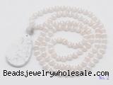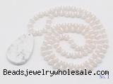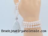 Details: Hand-knotted agate mala necklaces: 108 8mm/10mm round tibetan agate beads with white howlite pendant/12mm white crazy agate guru bead and white howlite pendant (you can choose different pendants, but there will be tiny different in shape & color, we will make the jewelry randomly according to our stock) Item: GMN5081 Material: No.1: 8mm: 108 8mm tibetan agate beads & white howlite pendant 10mm: 108 10mm tibetan agate beads & white howlite pendant No.2: 8mm: 108 8mm tibetan agate beads, 12mm white crazy agate guru bead & white howlite pendant 10mm: 108 10mm tibetan agate beads, 12mm white crazy agate guru bead & white howlite pendant Color: See image Length (inch): Necklace length: 8mm: approx 37 - 40 inches (Not including guru bead & pendant) 10mm: approx 46 - 50 inches (Not including guru bead & pendant) Quantity Discount Pricing: 1 - 4: None 5 - 49: 95% 50 - 99: 90% 100+: 85% This mala is available in both 8mm and 10mm beads, The listed price is for 1 piece 8mm mala necklace