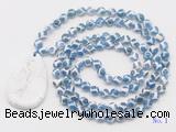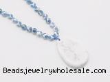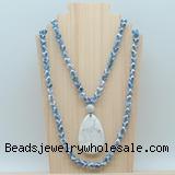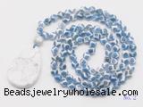 Details: Hand-knotted agate mala necklaces: 108 8mm/10mm round tibetan agate beads with white howlite pendant/12mm white crazy agate guru bead and white howlite pendant (you can choose different pendants, but there will be tiny different in shape & color, we will make the jewelry randomly according to our stock) Item: GMN5084 Material: No.1: 8mm: 108 8mm tibetan agate beads & white howlite pendant 10mm: 108 10mm tibetan agate beads & white howlite pendant No.2: 8mm: 108 8mm tibetan agate beads, 12mm sodalite guru bead & white howlite pendant 10mm: 108 10mm tibetan agate beads, 12mm sodalite guru bead & white howlite pendant Color: See image Length (inch): Necklace length: 8mm: approx 37 - 40 inches (Not including guru bead & pendant) 10mm: approx 46 - 50 inches (Not including guru bead & pendant) Quantity Discount Pricing: 1 - 4: None 5 - 49: 95% 50 - 99: 90% 100+: 85% This mala is available in both 8mm and 10mm beads, The listed price is for 1 piece 8mm mala necklace