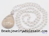 Details: Hand-knotted agate mala necklaces: 108 8mm/10mm round matte tibetan agate beads with fossil coral pendant/12mm white crazy agate guru bead and fossil coral pendant (you can choose different pendants, but there will be tiny different in shape & color, we will make the jewelry randomly according to our stock) Item: GMN5085 Material: No.1: 8mm: 108 8mm matte tibetan agate beads & fossil coral pendant 10mm: 108 10mm matte tibetan agate beads & fossil coral pendant No.2: 8mm: 108 8mm matte tibetan agate beads, 12mm white crazy agate guru bead & fossil coral pendant 10mm: 108 10mm matte tibetan agate beads, 12mm white crazy agate guru bead & fossil coral pendant Color: See image Length (inch): Necklace length: 8mm: approx 37 - 40 inches (Not including guru bead & pendant) 10mm: approx 46 - 50 inches (Not including guru bead & pendant) Quantity Discount Pricing: 1 - 4: None 5 - 49: 95% 50 - 99: 90% 100+: 85% This mala is available in both 8mm and 10mm beads, The listed price is for 1 piece 8mm mala necklace