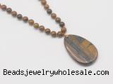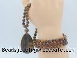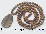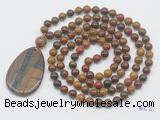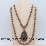 Details: Hand-knotted agate mala necklaces: 108 8mm/10mm round red moss agate beads with iron tiger pendant/12mm picasso jasper guru bead and iron tiger pendant (you can choose different pendants, but there will be tiny different in shape & color, we will make the jewelry randomly according to our stock) Item: GMN5092 Material: No.1: 8mm: 108 8mm red moss agate beads & iron tiger pendant 10mm: 108 10mm red moss agate beads & iron tiger pendant No.2: 8mm: 108 8mm red moss agate beads, 12mm picasso jasper guru bead & iron tiger pendant 10mm: 108 10mm red moss agate beads, 12mm picasso jasper guru bead & iron tiger pendant Color: See image Length (inch): Necklace length: 8mm: approx 37 - 40 inches (Not including guru bead & pendant) 10mm: approx 46 - 50 inches (Not including guru bead & pendant) Quantity Discount Pricing: 1 - 4: None 5 - 49: 95% 50 - 99: 90% 100+: 85% This mala is available in both 8mm and 10mm beads, The listed price is for 1 piece 8mm mala necklace