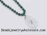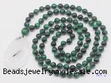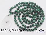 Details: Hand-knotted tiger eye mala necklaces: 108 8mm/10mm round green tiger eye beads with black rutilated quartz pendant/12mm guru bead and black rutilated quartz pendant (you can choose different pendants, but there will be tiny different in shape & color, we will make the jewelry randomly according to our stock) Item: GMN5096 Material: No.1: 8mm: 108 8mm blue tiger eye beads & black rutilated quartz pendant 10mm: 108 10mm blue tiger eye beads & black rutilated quartz pendant No.2: 8mm: 108 8mm blue tiger eye beads, 12mm guru bead & black rutilated quartz pendant 10mm: 108 10mm blue tiger eye beads, 12mm guru bead & black rutilated quartz pendant Color: See image Length (inch): Necklace length: 8mm: approx 37 - 40 inches (Not including guru bead & pendant) 10mm: approx 46 - 50 inches (Not including guru bead & pendant) Quantity Discount Pricing: 1 - 4: None 5 - 49: 95% 50 - 99: 90% 100+: 85% This mala is available in both 8mm and 10mm beads, The listed price is for 1 piece 8mm mala necklace