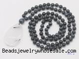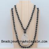 Details: Hand-knotted tiger eye mala necklaces: 108 8mm/10mm round grade AA blue tiger eye beads with black rutilated quartz pendant/12mm guru bead and black rutilated quartz pendant (you can choose different pendants, but there will be tiny different in shape & color, we will make the jewelry randomly according to our stock) Item: GMN5097 Material: No.1: 8mm: 108 8mm blue tiger eye beads & black rutilated quartz pendant 10mm: 108 10mm blue tiger eye beads & black rutilated quartz pendant No.2: 8mm: 108 8mm blue tiger eye beads, 12mm guru bead & black rutilated quartz pendant 10mm: 108 10mm blue tiger eye beads, 12mm guru bead & black rutilated quartz pendant Color: See image Length (inch): Necklace length: 8mm: approx 37 - 40 inches (Not including guru bead & pendant) 10mm: approx 46 - 50 inches (Not including guru bead & pendant) Quantity Discount Pricing: 1 - 4: None 5 - 49: 95% 50 - 99: 90% 100+: 85% This mala is available in both 8mm and 10mm beads, The listed price is for 1 piece 8mm mala necklace